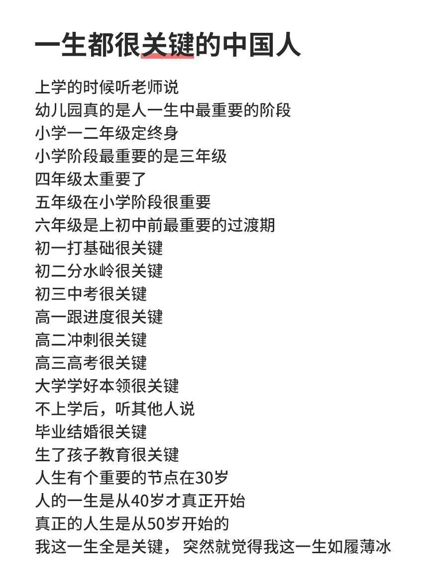 网上有个热门话题,名为中国人关键的一生